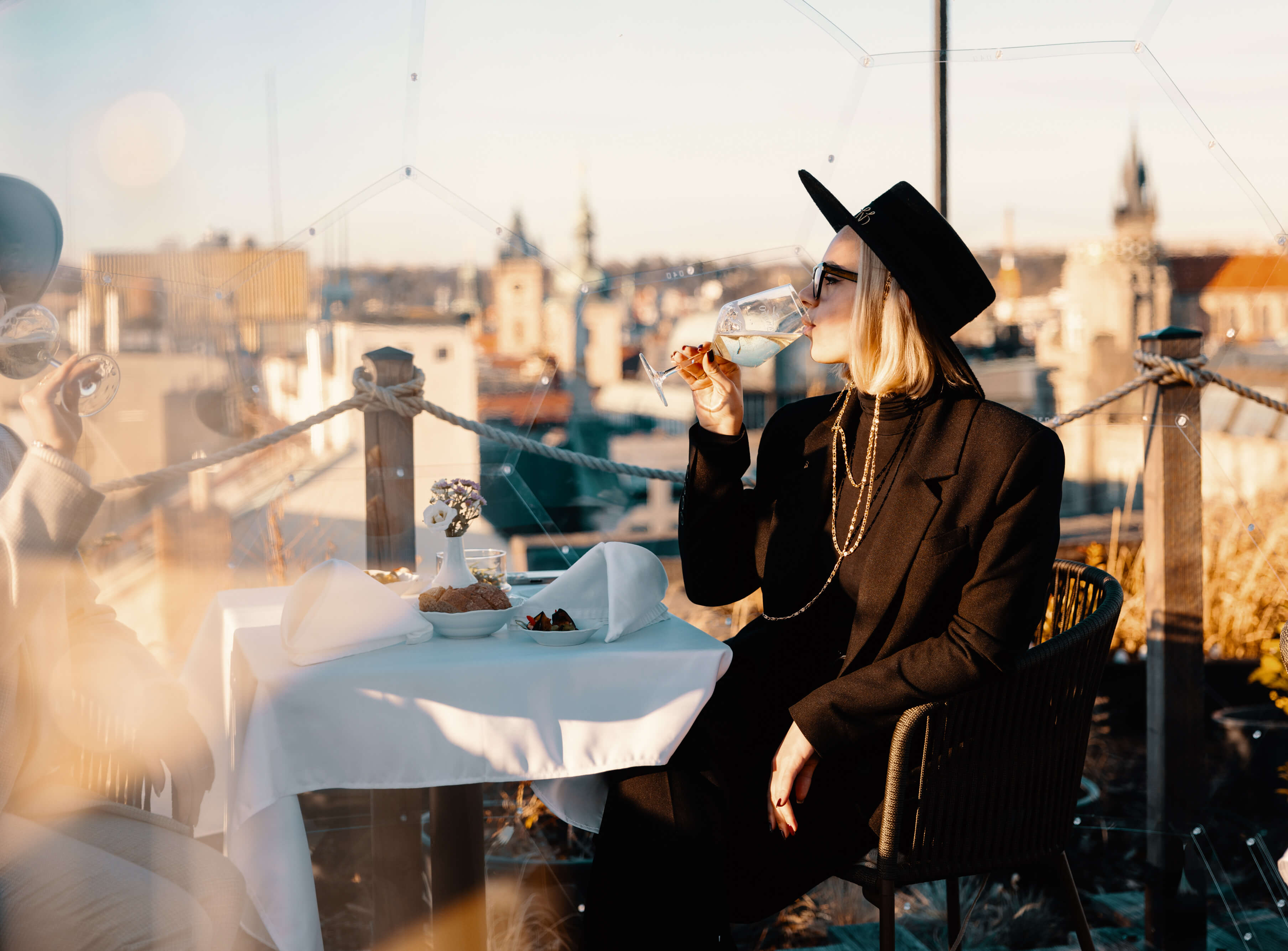 Aperitivo v Pytloun Sky Bar & Restaurant Prague s výhledem na Prahu a neomezenou konzumací vína pro 3