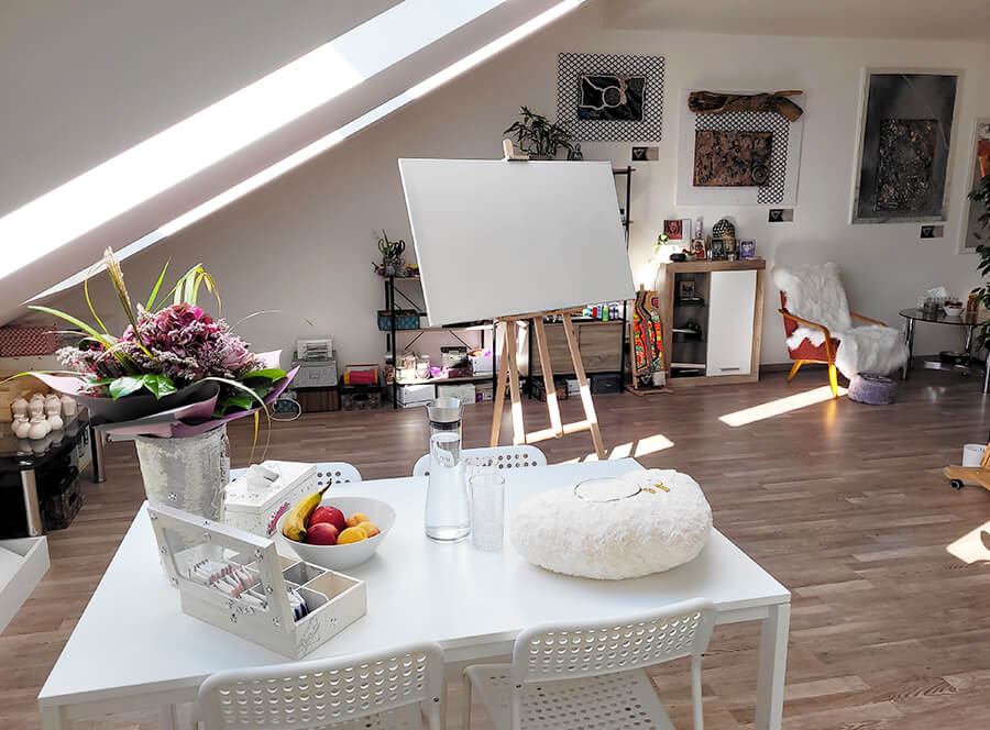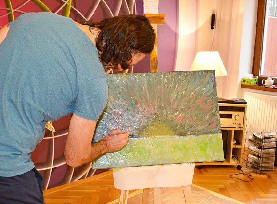 - cca 5 hodin intenzivní práce na sobě, která je propojená s malbou, terapií