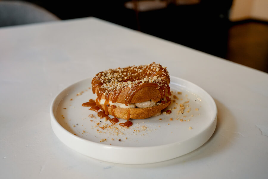 - Věneček (krém z červených fazolí a vanilky, kešu griliáš, kardamom, slaný karamel)