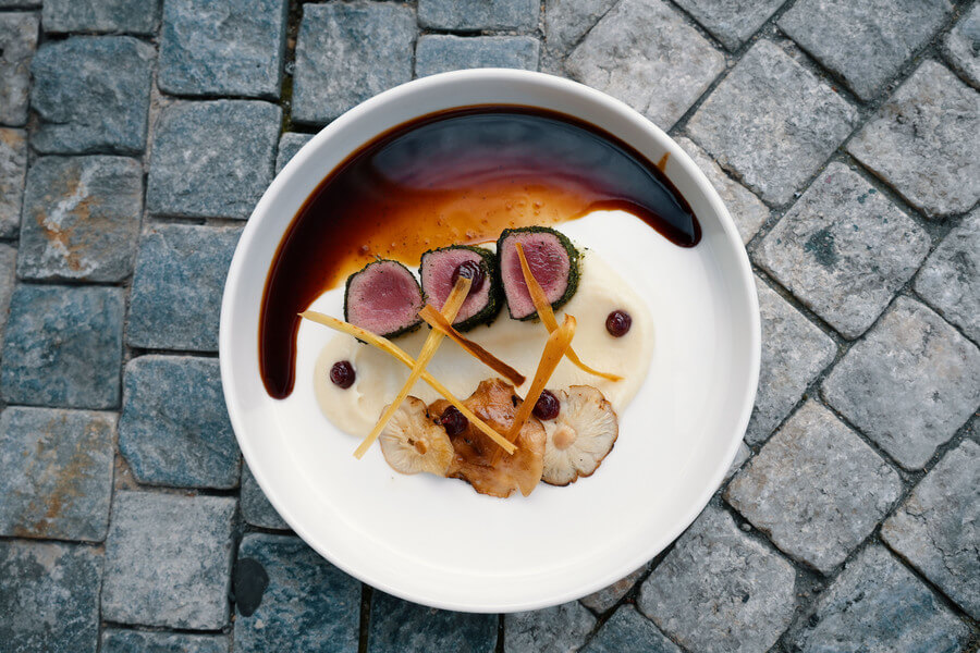 - 7chodové degustační menu pro 2 osoby (menu se může měnit dle sezóny)