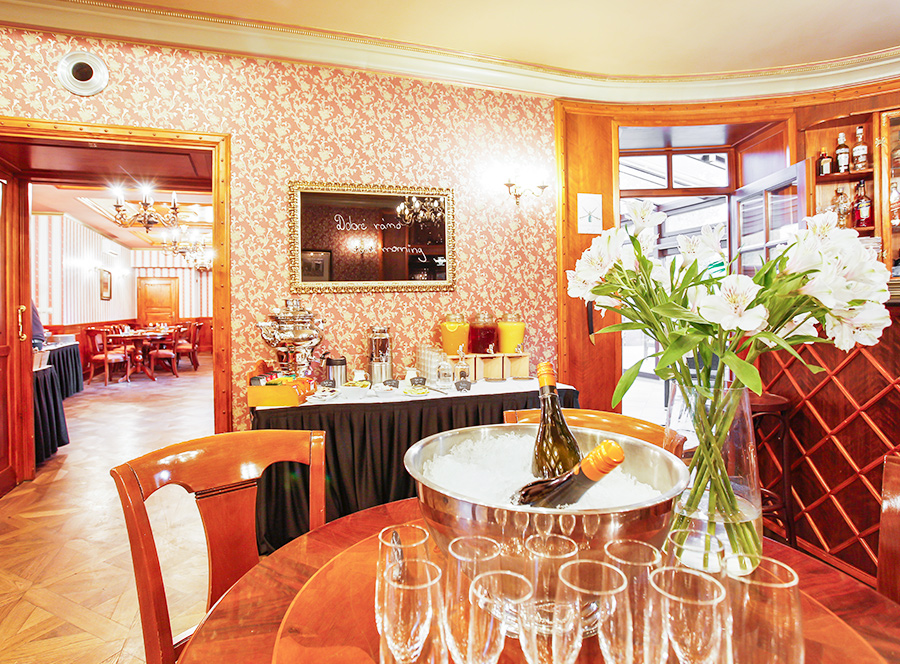 Umožňující konzumaci podávaného menu a alkoholických nápojů.