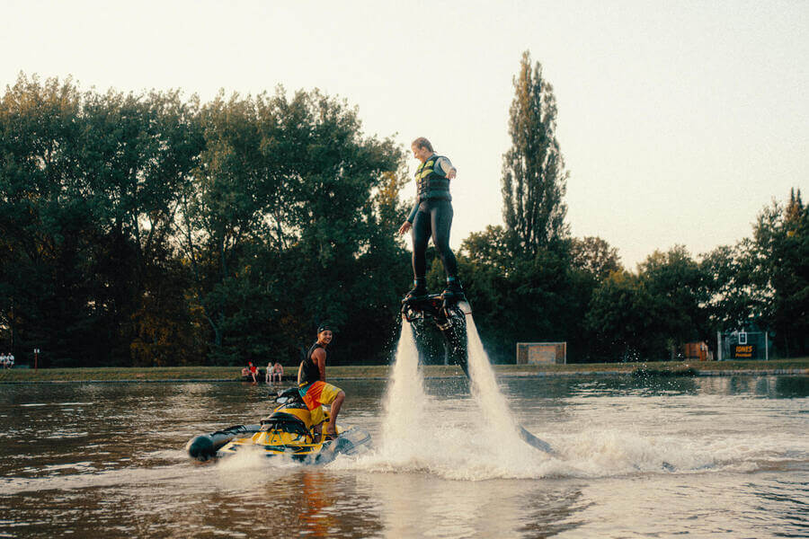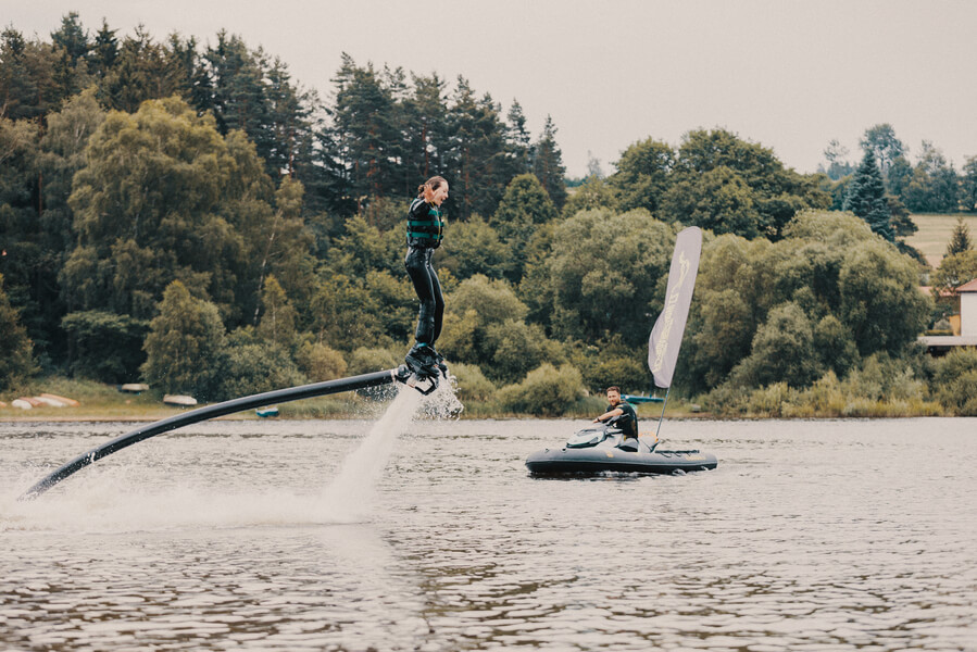 Co ten flyboard vlastně je? Jedná se o prkno poháněné vodními tryskami, které vás nadnáší ve vzduchu. Flyboarding zvládne každý, pokud máte dobrého trenéra. Profesionálové z týmu Flyboardshow zaručují, že vás na flyboardu naučí do 5 minut. Proleťte se jako pták nad vodní hladinou a nechte se učit od těch nejlepších flyboardistů v ČR!