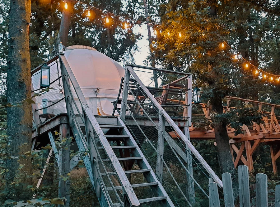 Hoďte starosti za hlavu a vydejte se na víkend do přírody, která vás uchvátí svým harmonickým klidem. Čekat na vás bude unikátní domek Cocoon Tree Bed, což je takový kulovitý stan zavěšený v korunách stromů. K dispozici má i terasu, na které je k dispozici i vlastní vířivka. A je jen na vás, jestli se sem vydáte se svou drahou polovičkou či s více lidmi. Domek je vhodný jak pro zamilované páry, tak i rodinky s dětmi či skupinky přátel. I když veškerý čas strávíte v přírodě, komfort budete mít i tak. Všechny domky v resortu jsou vybaveny vším potřebným. Chybět vám nebude koupelna se sprchou, WC, ale i maličkosti jako jsou deky, povlečení nebo skleničky na něco dobrého k pití. Ať už tedy chcete strávit klidný víkend a dobít energii, nebo si užít chvíle plné lásky a emocí, sem se zkrátka musíte vydat.