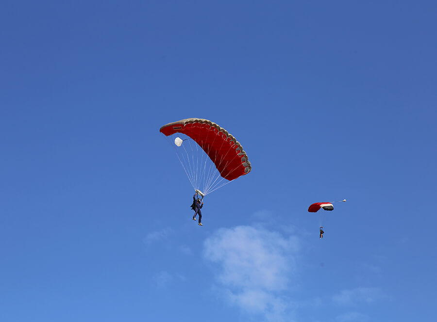 - veškeré vybavení, které budete potřebovat pro seskok - padák, zabalení padáku, přilba, ochranné brýle, výškoměr