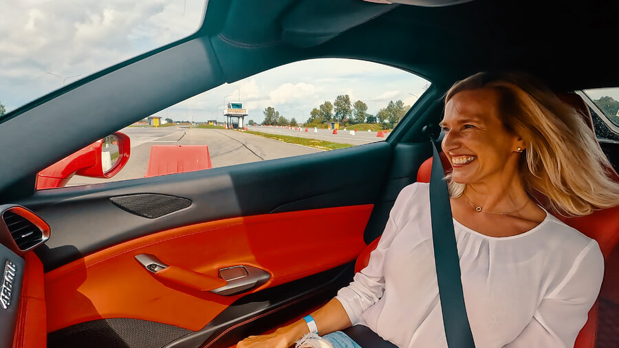 Vybrala jsem si Ferrari 488 GTB a ten zvuk motoru a zážitek z jízdy je prostě něco. Po pravdě, patřím do skupiny opatrných řidičů, takže za volantem jsem byla krapet nervózní. Po mojí krasojízdě mě v řízení vystřídal profík, a to byl neskutečný zážitek. Sekal se mnou zatáčky a na rovinkách měl plyn až na podlaze, jednoduše paráda, hned bych si to zopakovala. Pokud máte chuť na trochu adrenalinu a milujete auta, tohle je zážitek přesně pro vás.