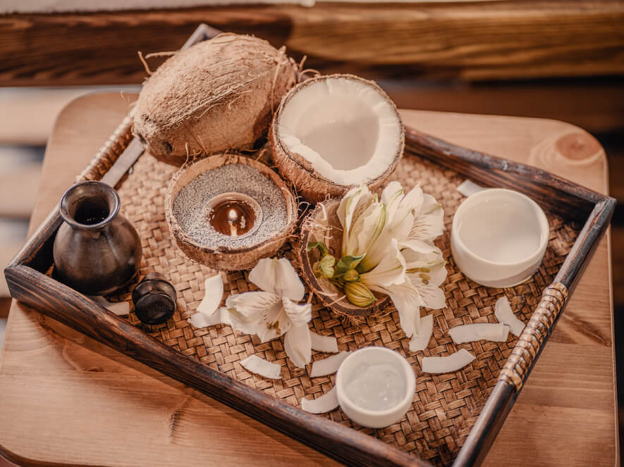 - 90 min. relaxační masáž pannenským kokosovým olejem