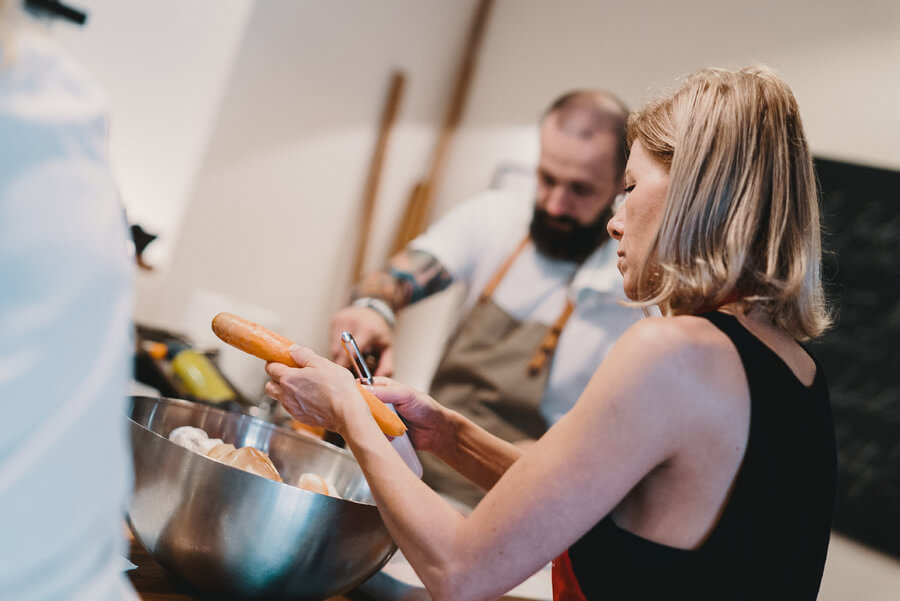 Při rezervaci si zvolíte kurz. Po příchodu do restaurace předáte obsluze svůj zážitkový poukaz. Kurz probíhá vždy ve skupince maximálně 8-16 účastníků. Podle vybraného kurzu pak budete připravovat menu. Na místě pak Váš mistrovský výkon rovnou sníte.