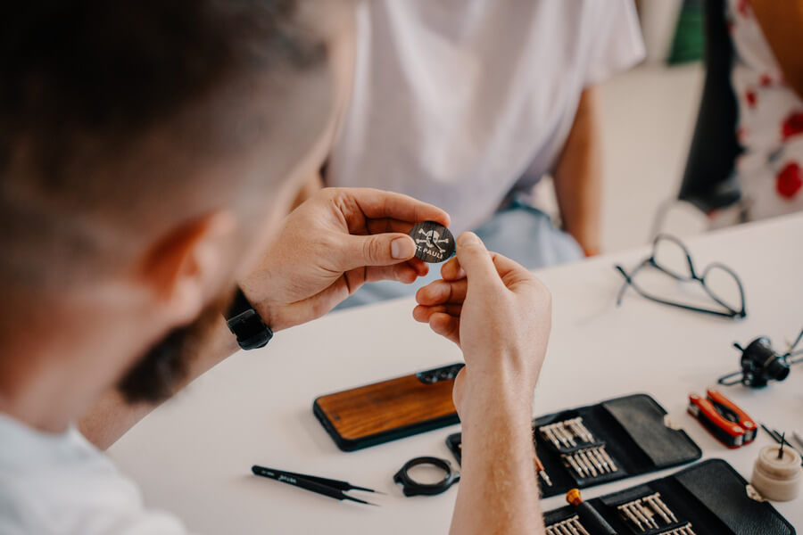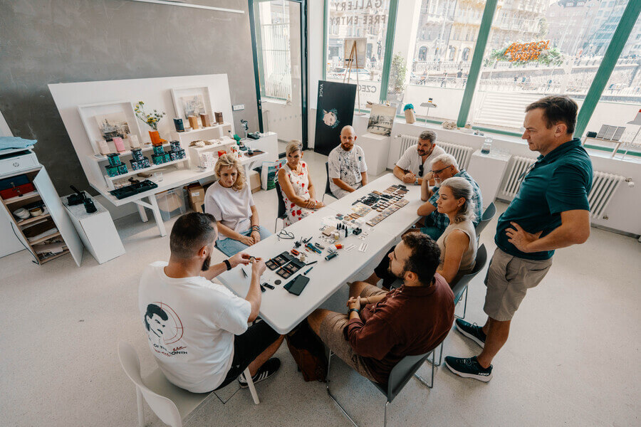 Dopředu si zarezervujte termín workshopu. Na místě už budou připravené veškeré komponenty, nástroje i občerstvení. Pod vedením zakladatele Martina si pak krok za krokem sestavíte vytoužené hodinky.