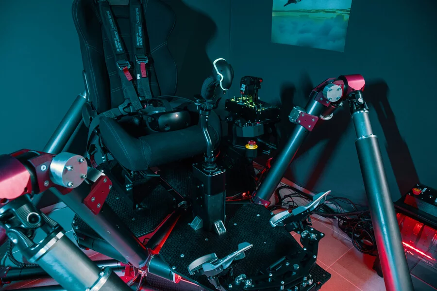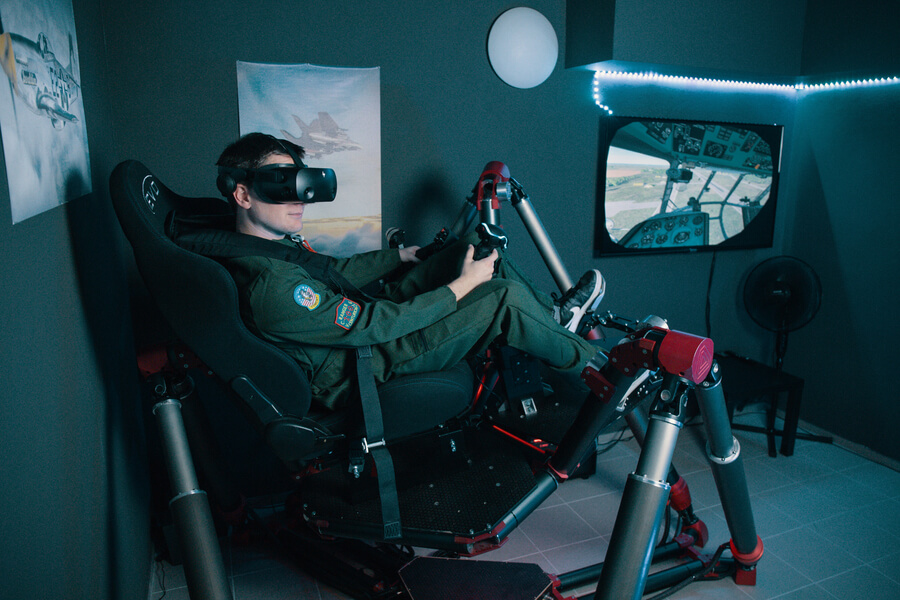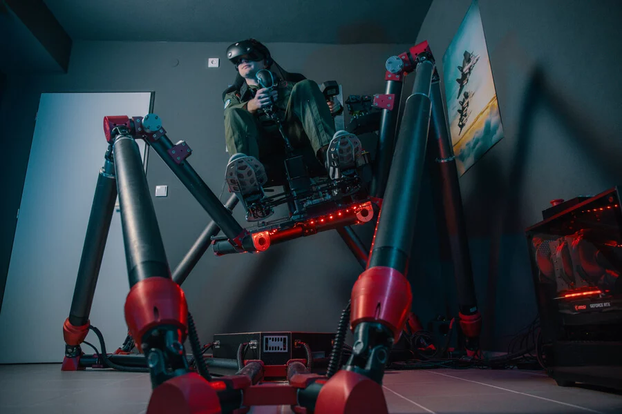 Zažijte jedinečný pocit z letu na pohyblivém simulátoru s virtuální realitou.