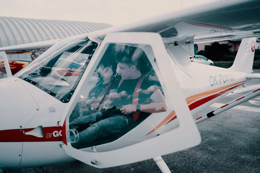 - 40 minut dlouhý let v dvoumístném sportovním letounu