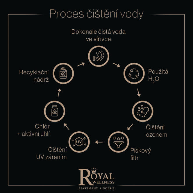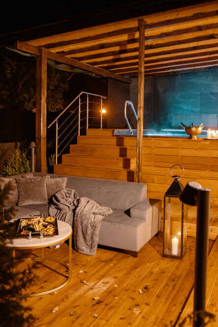 Zažijte kombinaci privátního wellness a ubytování v Dobříši kousek od Prahy. Apartmán Royal Vás okouzlí nadstandardním king size lůžkem s výhledem do ohně, prosklenou koupelnou s vlastní saunou a venkovní vířivkou s krásným výhledem do parku. Útulná terasa s nerezovou vířivkou je Vám k dispozici po celou dobu pobytu. Naprosté soukromí, chytré ovládání prostoru přes tablet a online rezervační systém zajistí, že nebudete nikým rušeni. Plně vybavený vinný bar, minibar i čerstvý led zajišťují komfort i pro náročné someliéry a gurmány. Zažijte romantiku se vším všudy v luxusním apartmánu Royal.