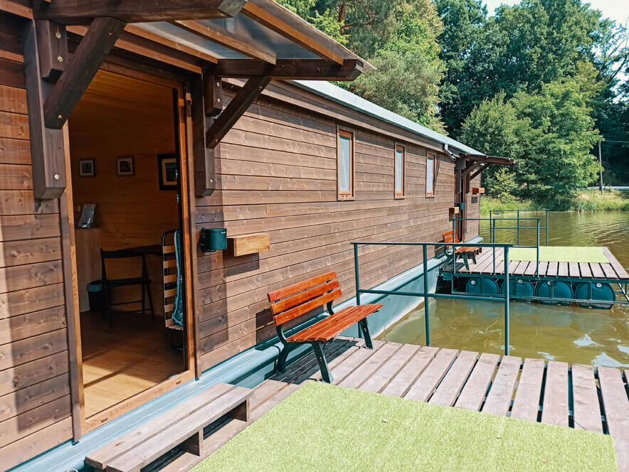 Pobyt na rybářském hausbótu nabízí pohodlné ubytování s možností rybaření přímo z vlastního mola.