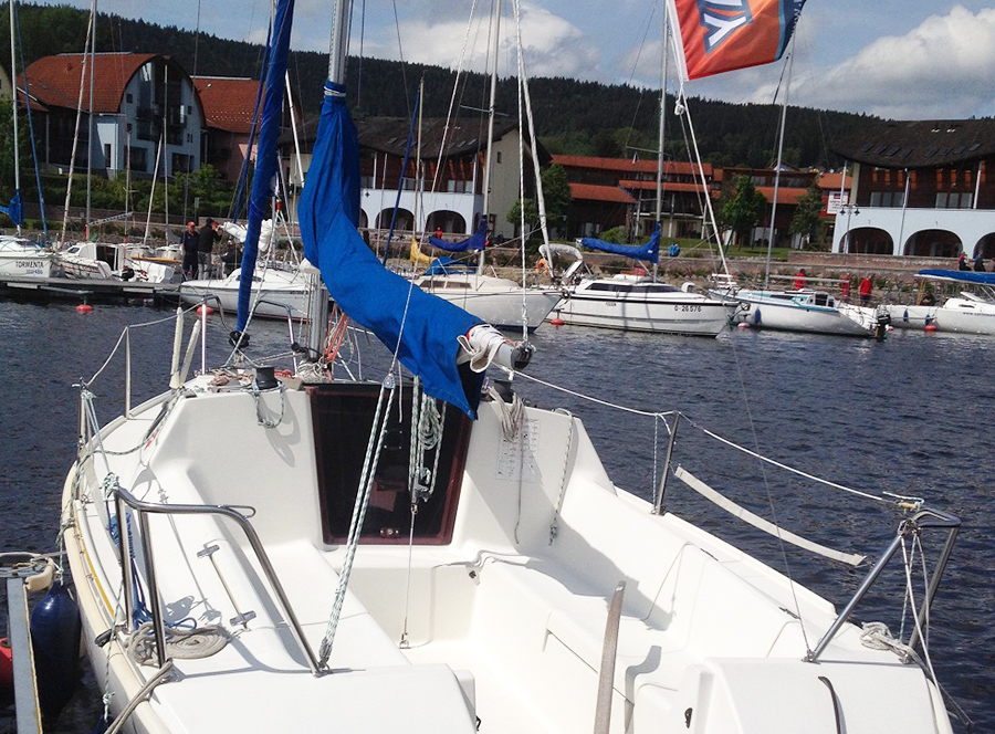 A: Technické parametry plachetnice: celková délka - 6 m, šířka – 2,3 m, ponor – 1,1 m, velikost oplachtění – 11 m2, není třeba průkaz VMP ( „řidičák" na loď), vratná kauce 5.000Kč.