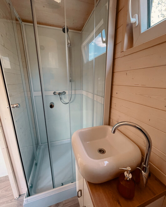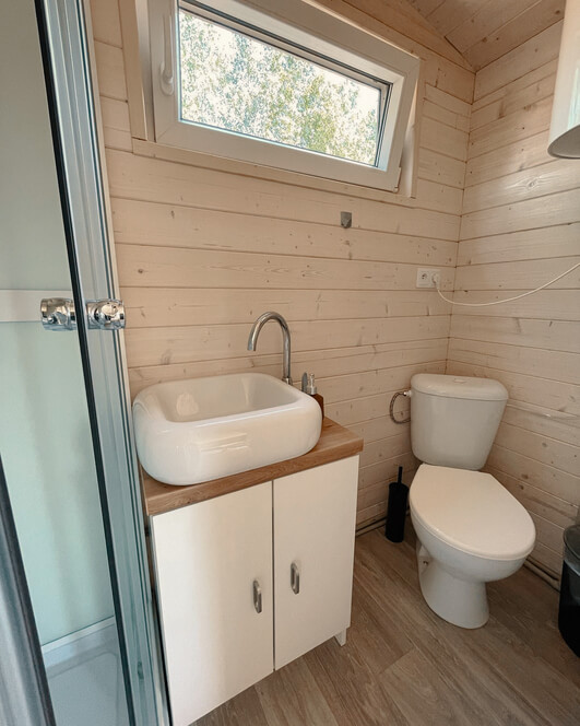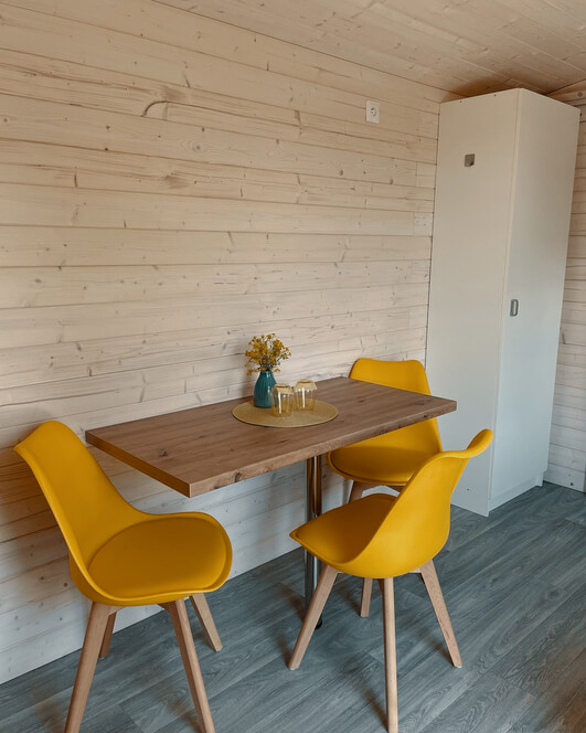 - 2 x ubytování v luxusní maringotce (dvoulůžko, sofa, stůl se židlemi, koupelna se sprchou a WC) pro 2 osoby