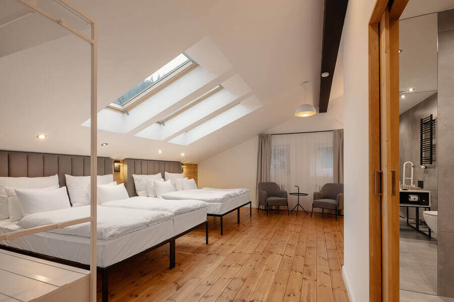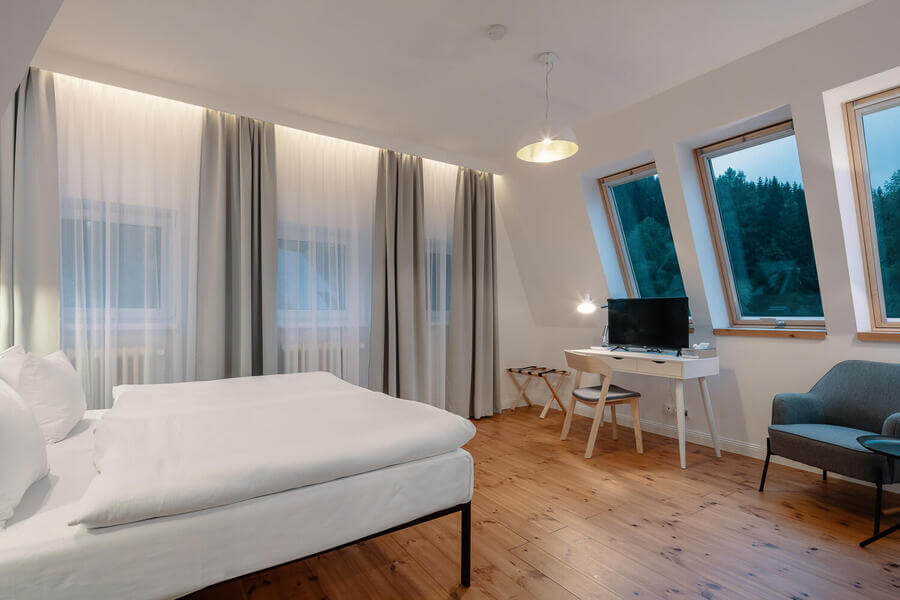 Nechte za sebou každodenní starosti a vydejte se do oázy klidu v Pytloun Wellness Hotelu Harrachov. Přivítá vás čerstvý horský vzduch a pohodlí moderního hotelu s malebným výhledem na Čertovu horu přímo z vašeho pokoje. Relaxujte ve wellness centru s bazénem, finskou saunou a přírodním biotopem. Užijte si chvíle plné pohody – od bohatých snídaní, přes příjemné večeře, až po antistresovou masáž, která z vás smyje všechny starosti. Pohodlně se uvelebte a nechte se hýčkat prvotřídním servisem a atmosférou Krkonoš.