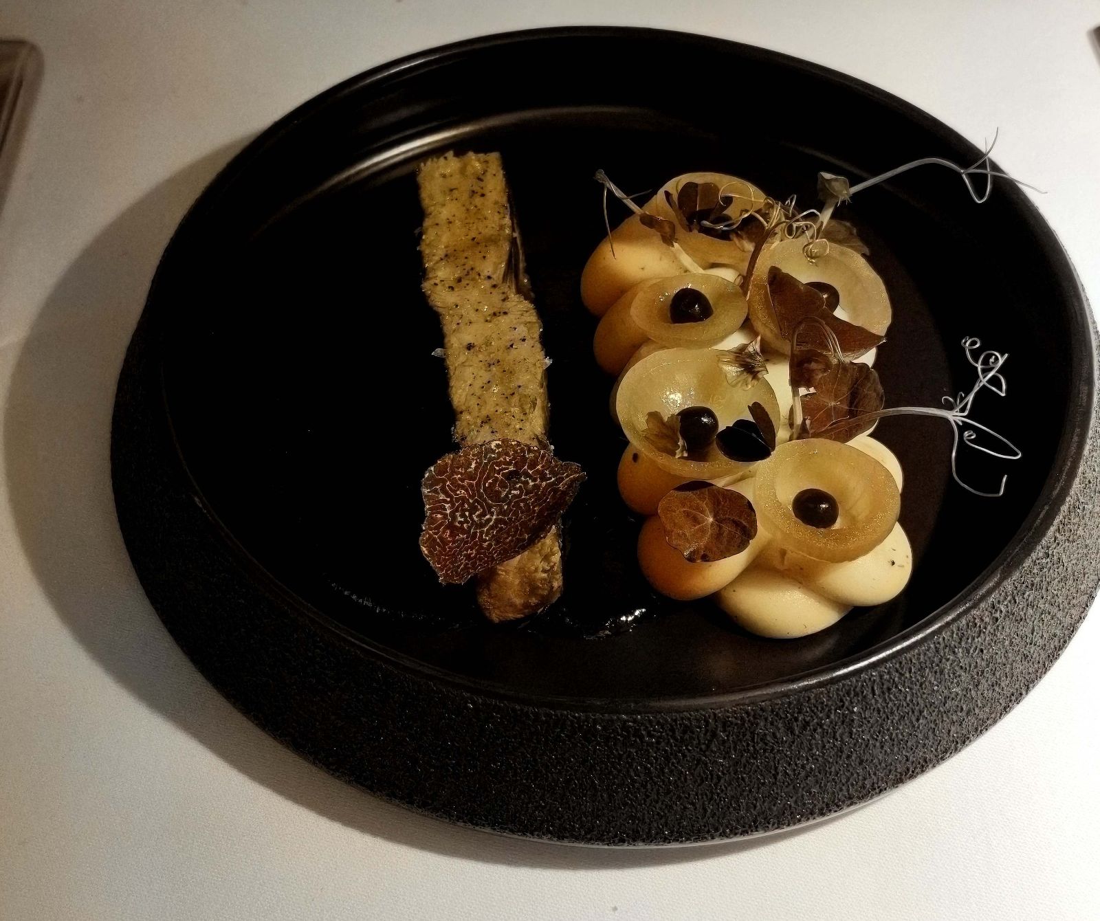 A: Aktuální “L’ATELIER degustační menu“ od 07.10.2025 je složeno z: Moët & Chandon Imperial Brut (0,1l) . Amuse-Bouche - Bretaňské pečivo a máslo . 1. Lilek Lilek/Houby/Citron 2.Treska Treska/Uzený kefir / Miso / Pažitka 3. Steak Hovězí / Černý česnek / Cibule / Lanýž / Balsamico 4. Čokoláda Kakao / Čokoláda Ghana 80% / Uzená paprika/Miso . Káva nebo výběr z nabídky exkluzivních čajů