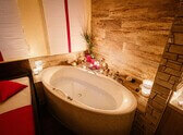 - 90minutovou partnerskou wellness proceduru Láskyplné laškování (parní kabinka, perličková koupel, vyhřívaný peelingovým stůl, vodní lůžko, láhev vína)