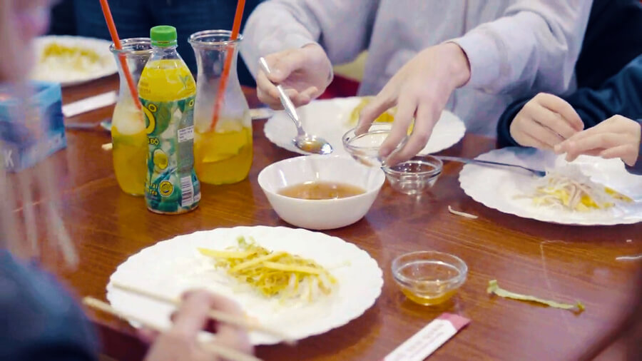 - návštěvu obchodů s potravinami, kde se naučíte, jak rozeznat správné druhy rýžových papírů, nudlí, bylinek a dalších klíčových ingrediencí pro přípravu nejen závitků