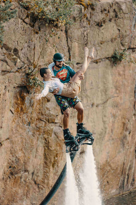 Vyzkoušejte adrenalinový sport flyboarding společně s instruktorem z týmu nejlepšího českého flyboardisty Petra Civína. Tandemový let je ideální pro ty, kteří si na samotné ovládání nevěří, ale přesto chtějí zažít flyboard na vlastní kůži. Vznášejte se až 10 metrů nad vodou, prožijte pocit volnosti jako superhrdina a užijte si vzdušné triky, které s vámi třeba instruktor vyzkouší.