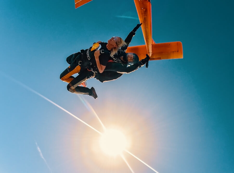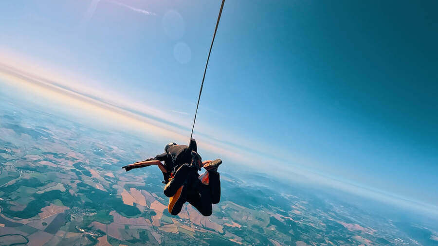 Během krátké, cca 20-ti minutové instruktáže, vám tandempilot vysvětlí vše důležité, obléknete si kombinézu a ustrojíte se do speciálního postroje pro seskok. Poté nastoupíte s tandempilotem do letadla a vystoupáte do výšky potřebné k seskoku. Během stoupaní si vás tandempilot k sobě připne speciálním postrojem a po dosažení správné výšky následuje seskok. Skáče se z výšky 3000 metrů. Následuje cca 25 vteřin volného pádu rychlostí cca 200 km/h. Ve výšce 1500 metrů otevře tandempilot padák a následuje přibližně 6-8 minut letu. Následuje bezpečné měkké přistání na matičku zemi. Poskytovatel garantuje výšku seskoku a dostatečné kapacity termínů.