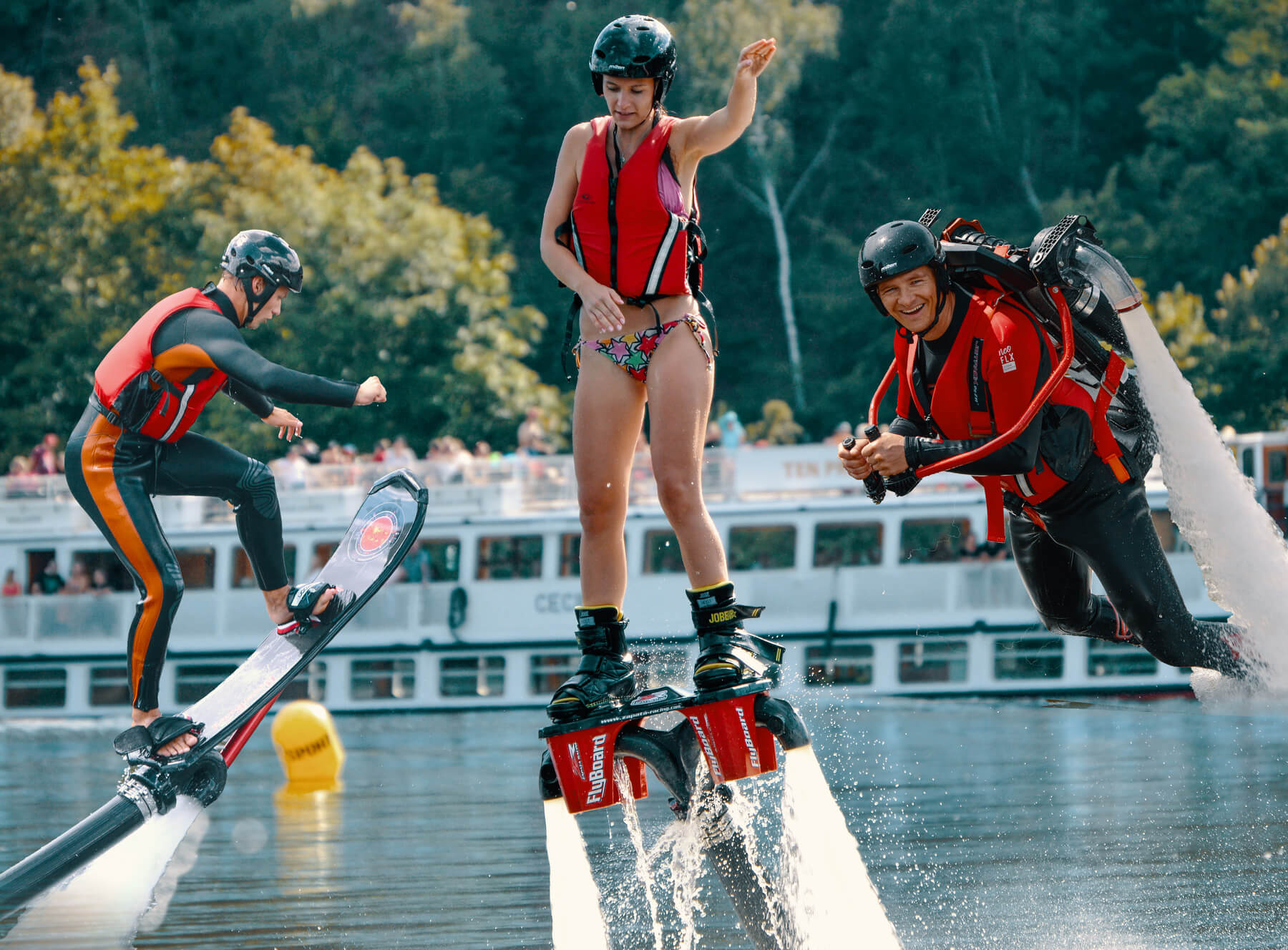 Nevíte, který je pro vás vhodný? Nevadí! Svoje vznášedlo si vyberete až na místě. Létat můžete i bez předchozích zkušeností, ostřílení instruktoři vás se vším obeznámí. Zkuste si, jaké to je létat jako superhrdina nad vodní hladinou a užijte si adrenalinovou pecku v podobě flyboardingu, hoverboardu nebo jetpacku .
