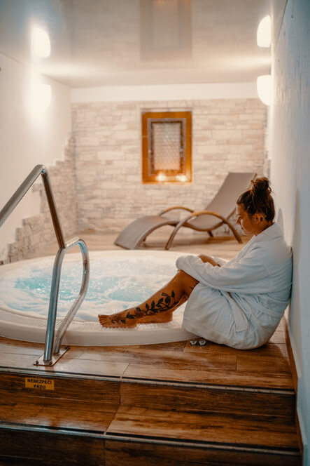 Přímo v srdci Moravy, kde vládne milovaný nápoj z hroznových bobulí, si užijete doslova wellness jako víno. Propojení zážitků, wellness procedur a vína, vám přinese nezapomenutelné chvíle a pocit nekonečné relaxace. V České republice jde o první zařízení, jehož hlavní doménu tvoří víno a vinné procedury. Již po staletí jsou známé blahodárné účinky vína, kterých vinoterapie velmi moderním a příjemným způsobem využívá. Vychutnejte si právě teď víno všemi vašimi smysly.