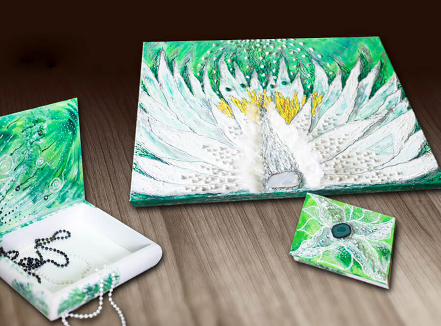 Po příchodu předložíte svůj zážitkový poukaz a workshop může začít. Budete malovat a tvořit formou hry. Budete mít možnost nejen malovat akrylovými barvami a pastami, ale také výrobek doplnit různými kreativními předměty a materiály (drahými kameny, korálky, třpytky, …). Dozvíte se o různých technikách malby a plno dalších rad a doporučení. Při rezervaci termínu je možné se domluvit na jiném výrobku či rozměru. Na Vaši žádost Vám může umělkyně Pavla zaslat přehled výrobků. Vzniklý rozdíl v ceně se hradí na místě konání zážitku.