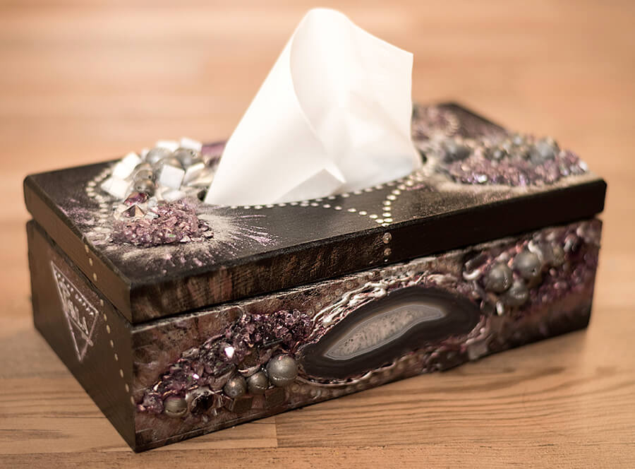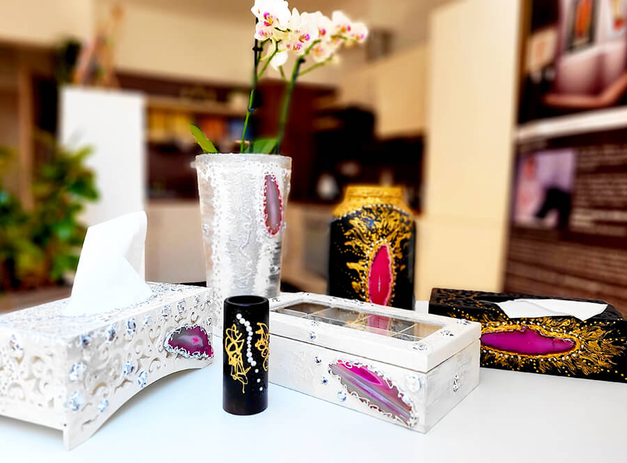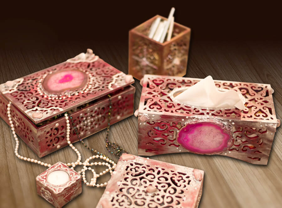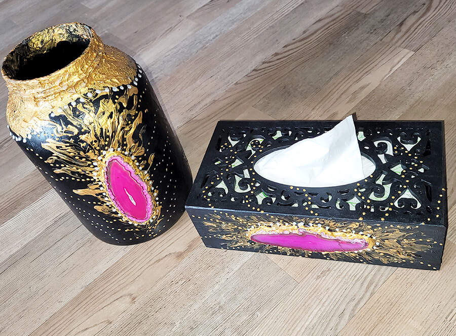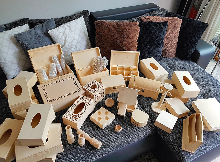 - 2x výrobek dle vlastního výběru (dřevěná obdélníková krabička na kapesníky nebo skleněná váza)